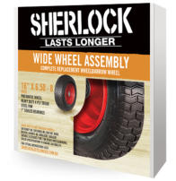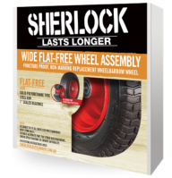 Wide Flat Free Wheelbarrow Wheel AssemblyProduct Code: SHW6PUBU•Wide 16” x 6.5-8•Solid Polyurethane Tyre with Heavy Duty Steel Rim•1” Sealed Bearings•Puncture resistant•Complete replacement wheelbarrow wheel•Spare part to suit SHERLOCK models SH100HGP-BU, SH100HGS-BU, BU51BF, BU68, BU68TH, SH68VIS-BU, BBBLUEBF, SHGALBF