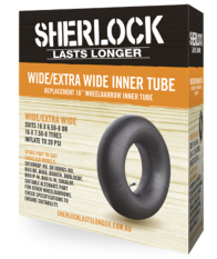 Wide/Extra WideWheelbarrow Inner Tube Product Code:MW6TUBU•Wide/Extra Wide 16” x 6.50-8•Suits 16” x 6.50-8 or 16” x 7.50-8 tyres•Inflate to 20 PSI•Installation instructions on packaging•Spare part to suit Sherlock models SH100HGP-BU, SH100HGS-BU, BU51BF, BU68, BU68TH, SH68VIS-BU, BBBLUEBF, BU51P-W, BU51S-W, SHGALBF•Suitable alternate part for other wheelbarrows. Check specifications to ensure suitability