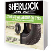 Heavy Duty Tread Wheelbarrow Wheel AssemblyProduct Code: SHW45HDBU•Heavy Duty 4.80/4.00-8•4 ply Pneumatic Tyre with Heavy Duty Chunky Tread•Steel Rim with 1” sealed bearings•Complete replacement wheelbarrow wheel•Spare part to suit all Sherlock models