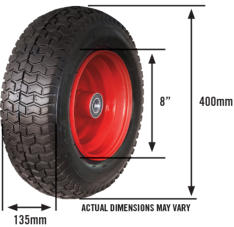 Standard Wheelbarrow Wheel Assembly Product Code: SHW45BU•Standard 4.80/4.00 - 8•4 ply Pneumatic Tyre with Heavy Duty tread•Steel Rim with 1” sealed bearings•Complete replacement wheelbarrow wheel•Spare part to suit Sherlock models SS85P-N, SS85S-N, NB75P-BU, SH46
